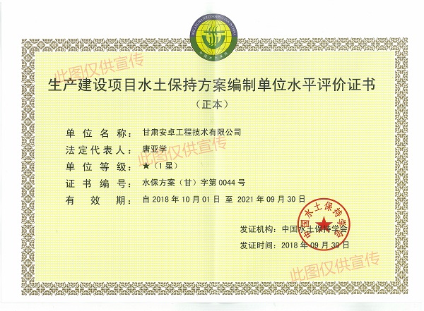 【水保資質】生產建設項目水土保持方案編制單位水平評價證書
