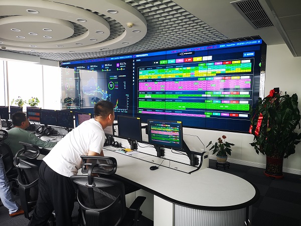 集控中心主要集中控制了新疆哈密、甘肅武威、甘肅敦煌、甘肅瓜州、寧夏光伏的五個(gè)電站,顯示屏顯示主要內(nèi)容為:電站發(fā)電量、正常生產(chǎn)機(jī)組、檢修機(jī)組、限電機(jī)組生產(chǎn)情況。