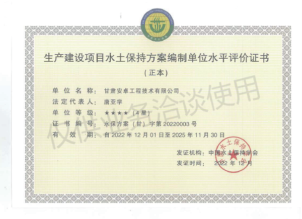 生產建設項目水土保持方案編制單位水平評價證書(4星)